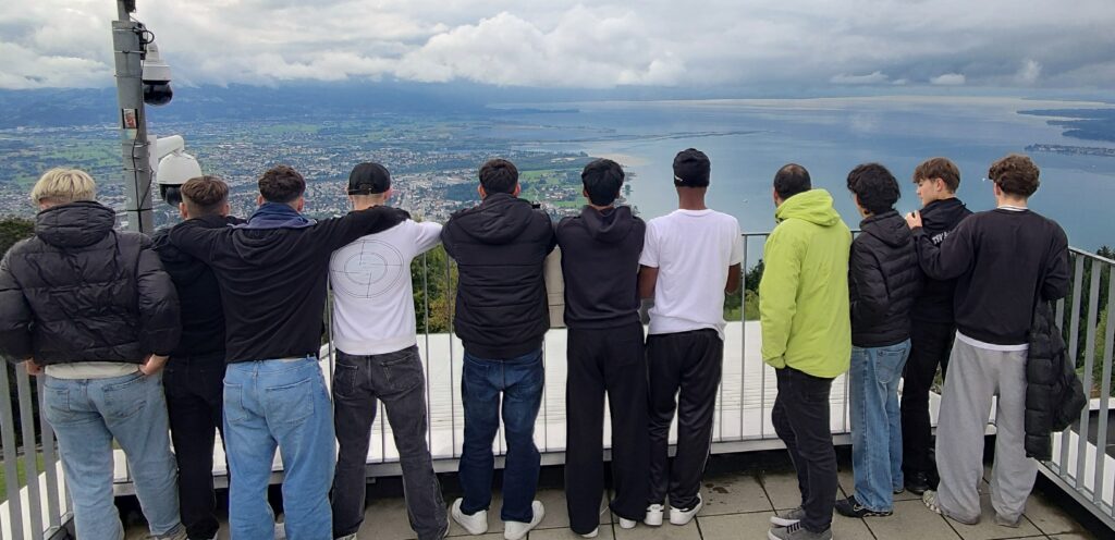 Vom 25. bis 27. September machten sich unsere Leichtathleten auf den Weg zum Bodensee, begleitet von Frau Wech-Sixt und Herrn Kocak. Auf der Hinfahrt legte die Gruppe einen Stopp in Bregenz ein und fuhr mit der Pfänderbahn auf den Berg. Oben wurde das traumhafte Panorama genossen und natürlich viele Fotos geschossen. Den Rückweg meisterten alle sportlich zu Fuß über den Wanderweg.